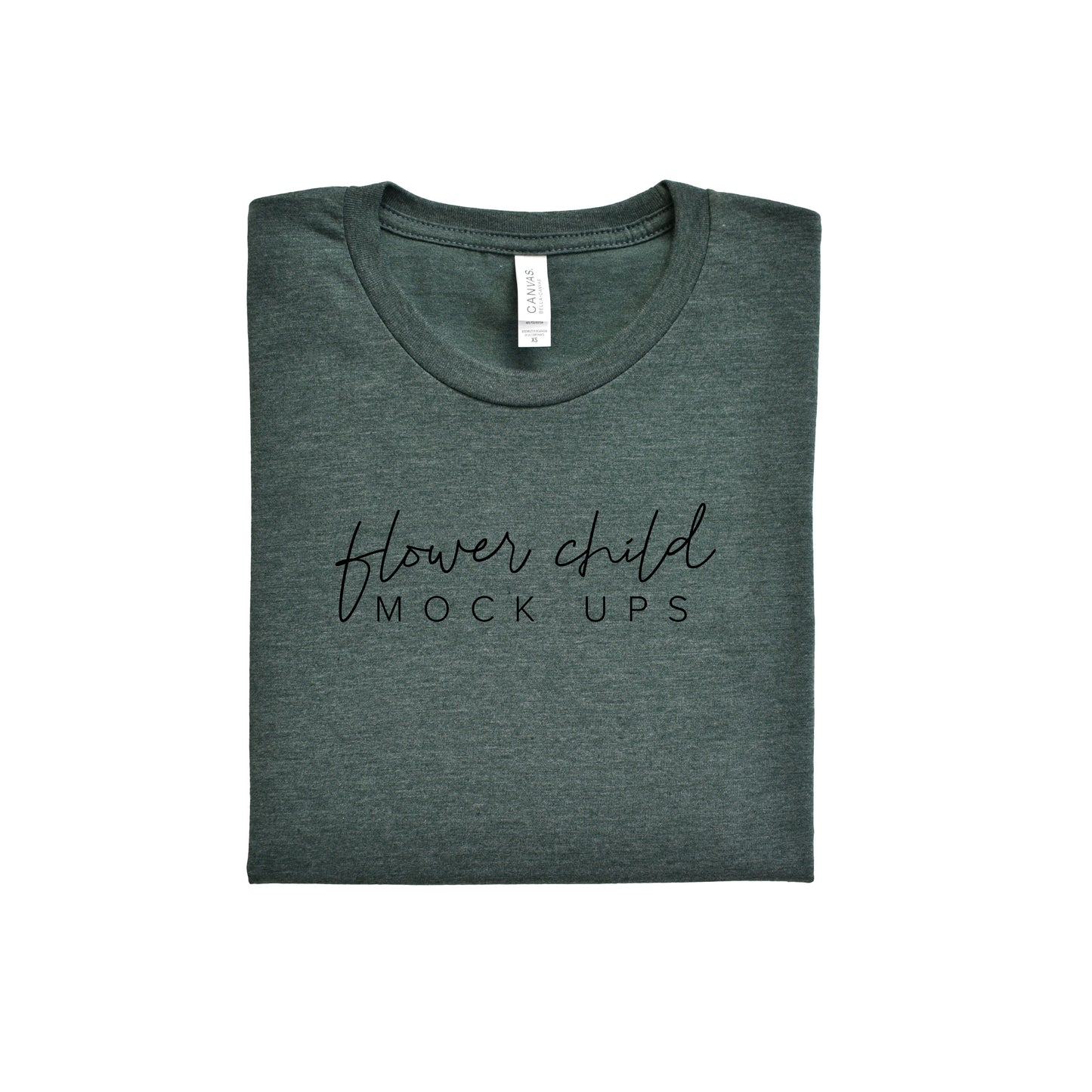 Bella Canvas 3001 Heather Forest Folded Mockup