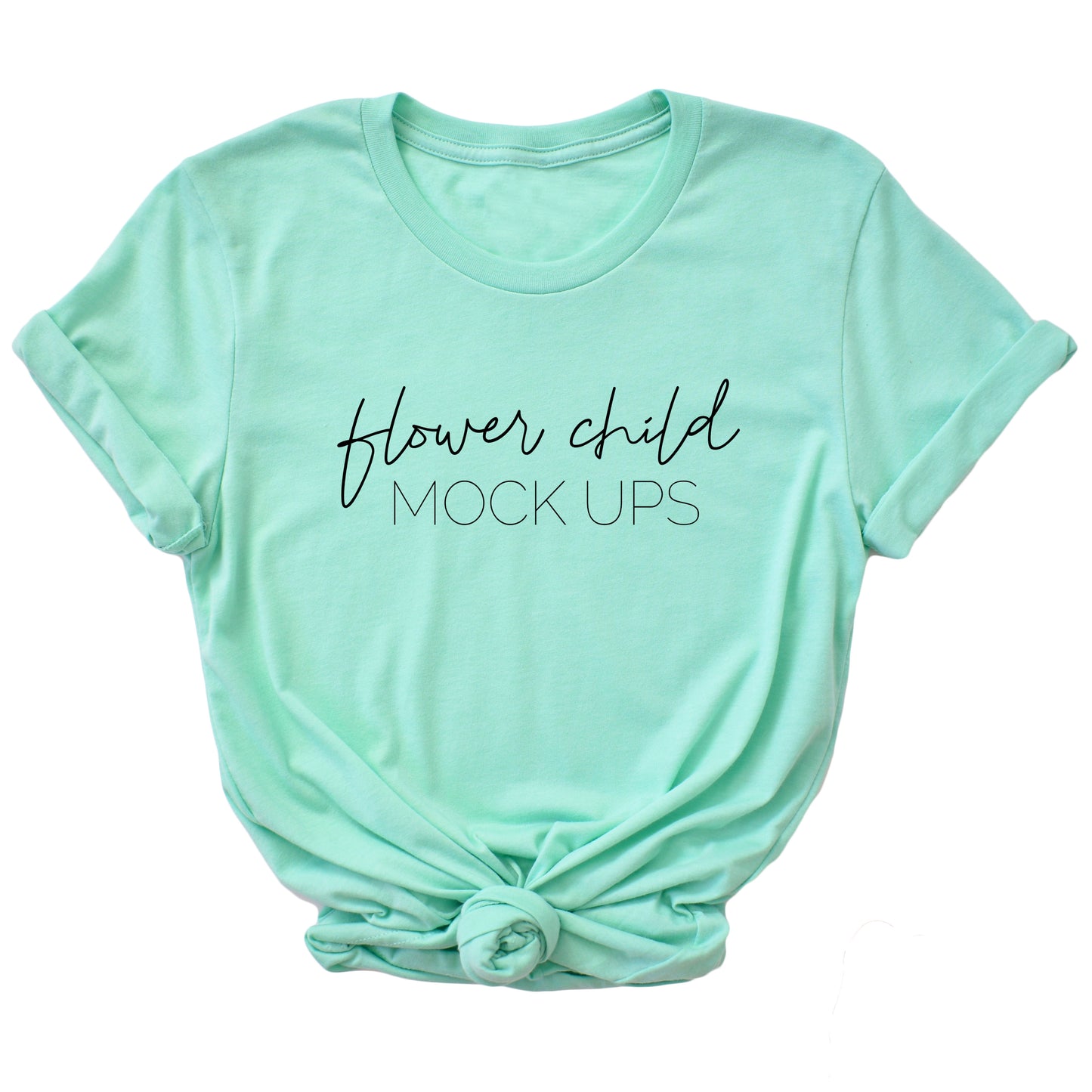 Bella Canvas 3001 Heather Mint Mockup Center Knot TAGLESS