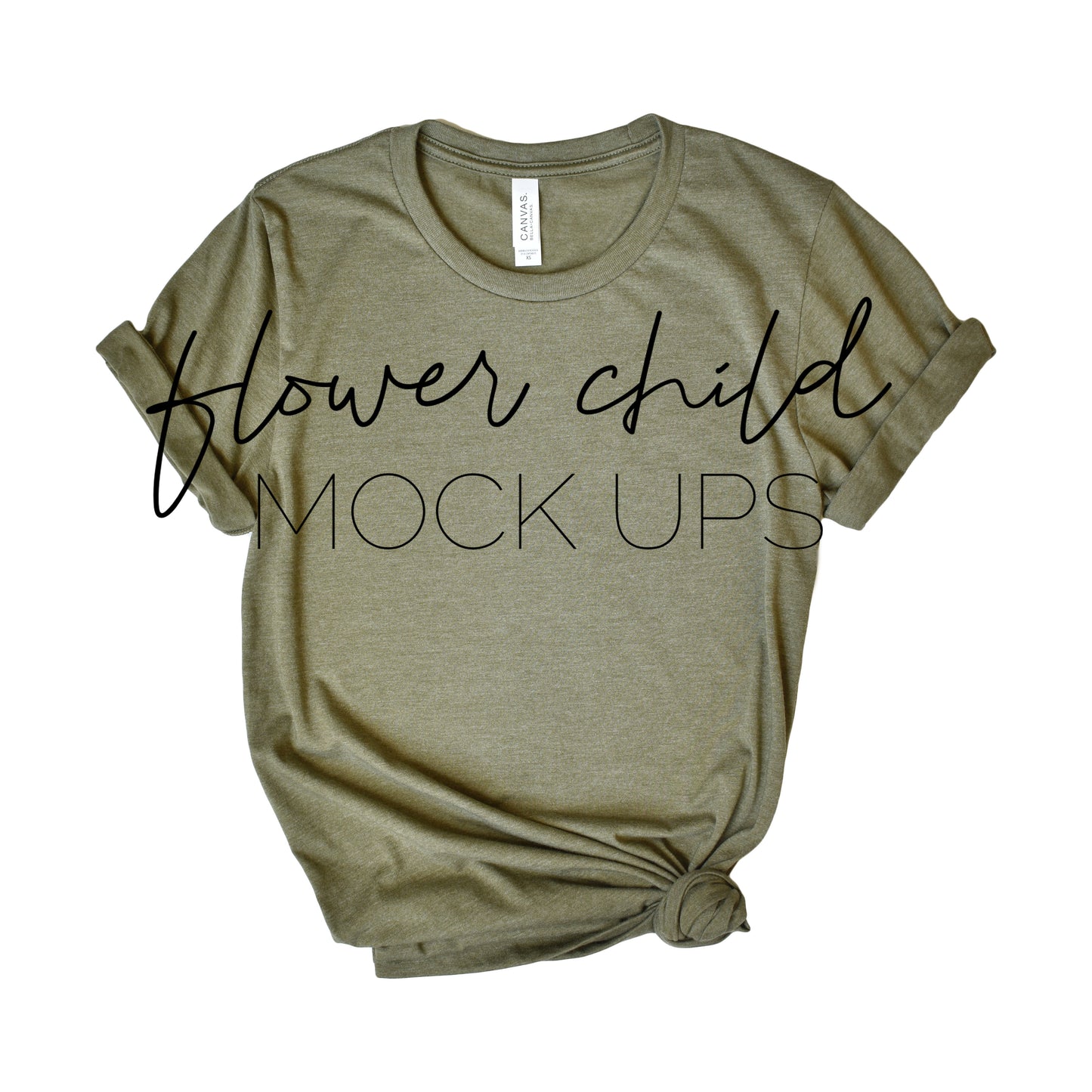 Bella Canvas 3001 Mock-up Heather Olive Side Knot