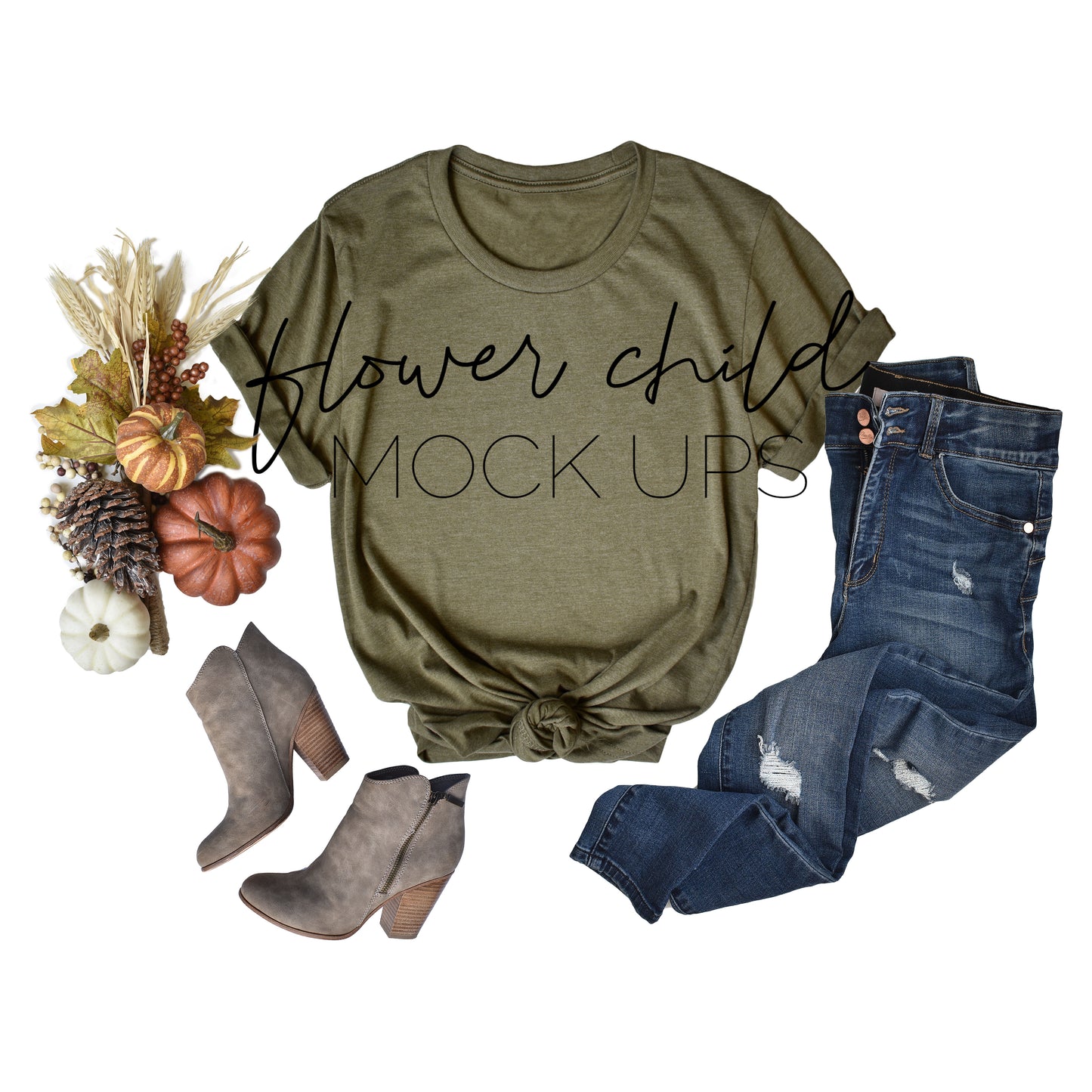Bella Canvas 3001 Mockup Heather Olive Center Knot Fall