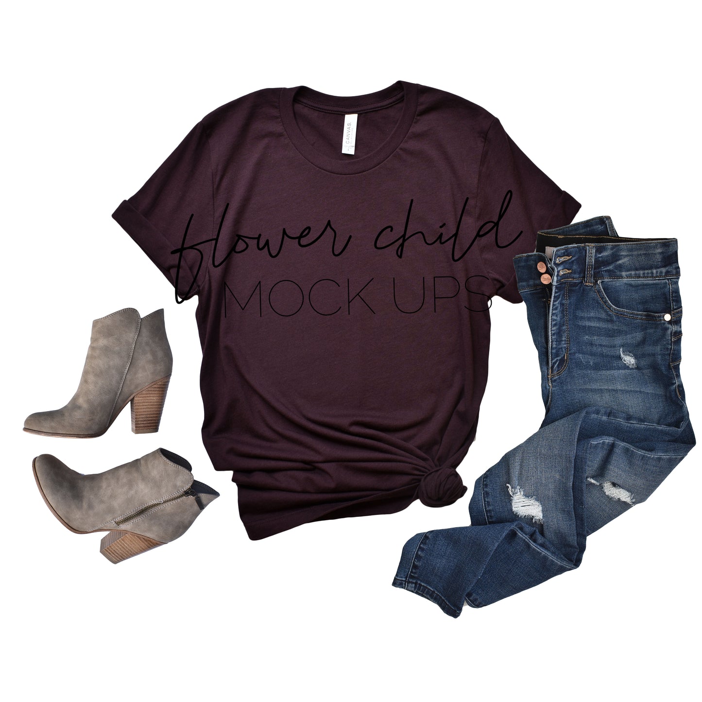Bella Canvas 3001 Oxblood Mockup Jeans Booties