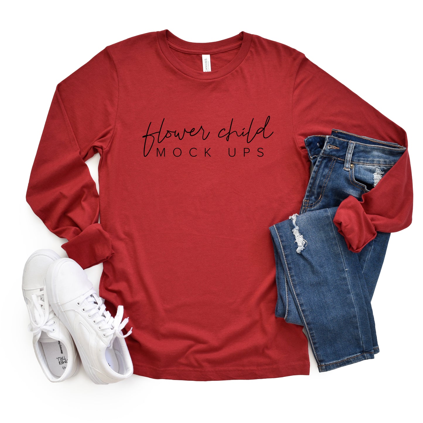 Bella Canvas 3501 Cardinal Mockup Fall Flatlay