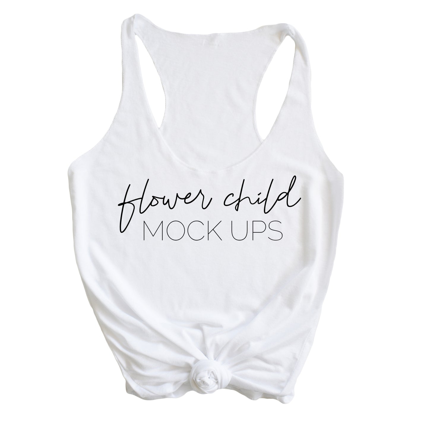 Bella Canvas 8430 Solid White Triblend Mockup Center Knot TAGLESS