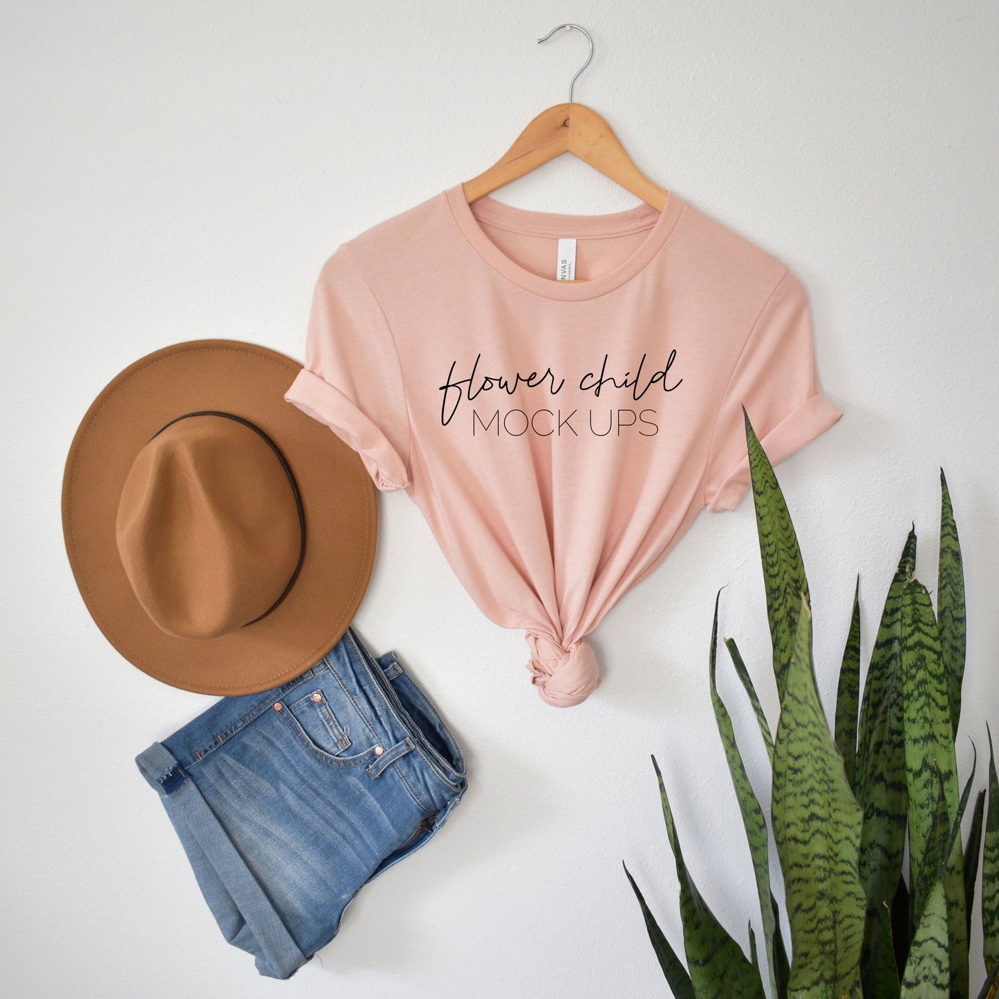 Boho Mockup Bella Canvas 3001 Heather Peach