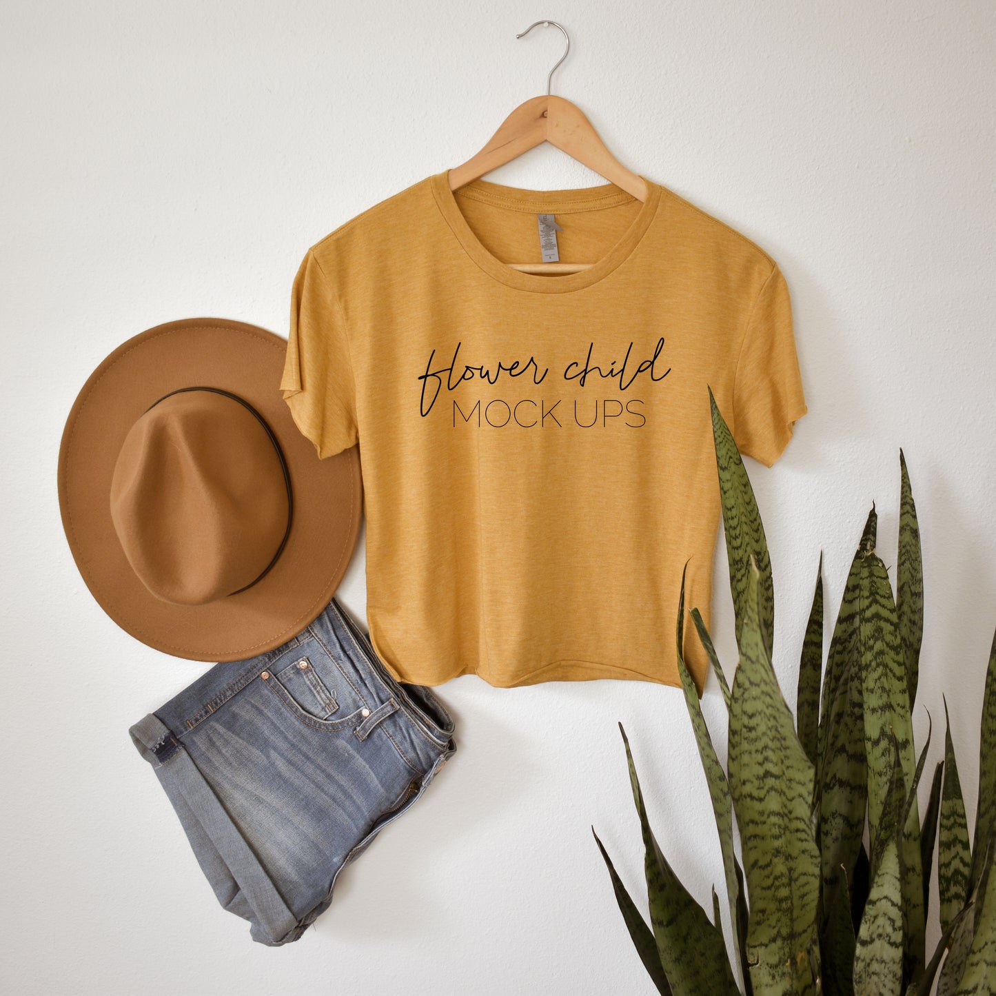 Moody Boho Mockup Next Level 5080 Crop Top Antique Gold